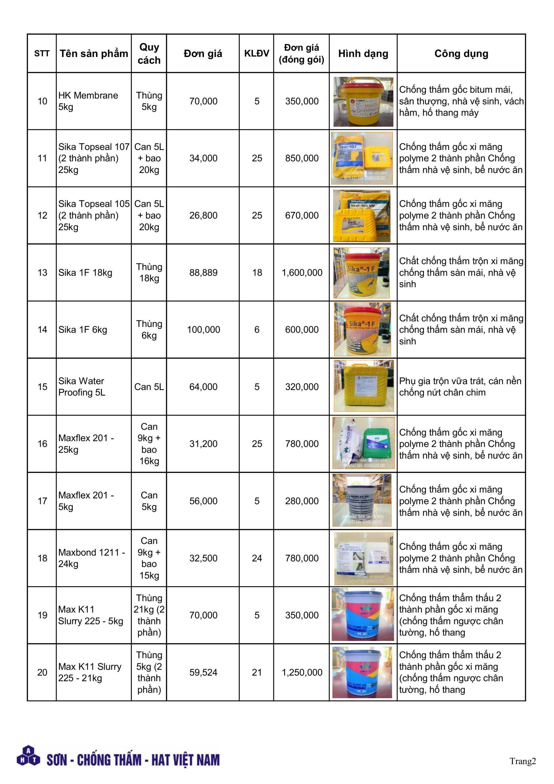Sika chống thấm HAT Việt Nam xin được gửi tới Quý khách hàng bảng báo giá sika chống thấm dành cho khách hàng mua lẻ cập nhật mới nhất năm 2026