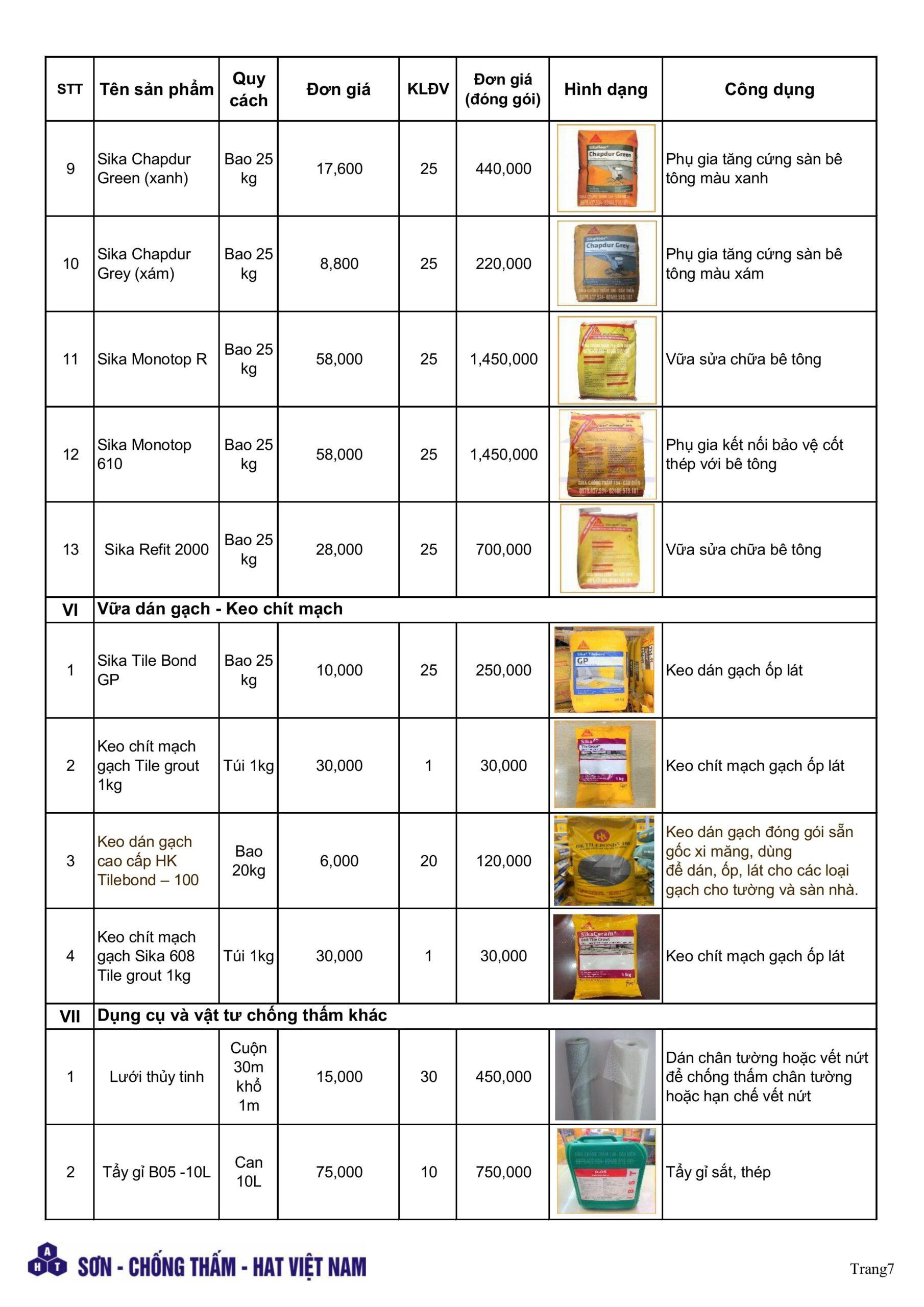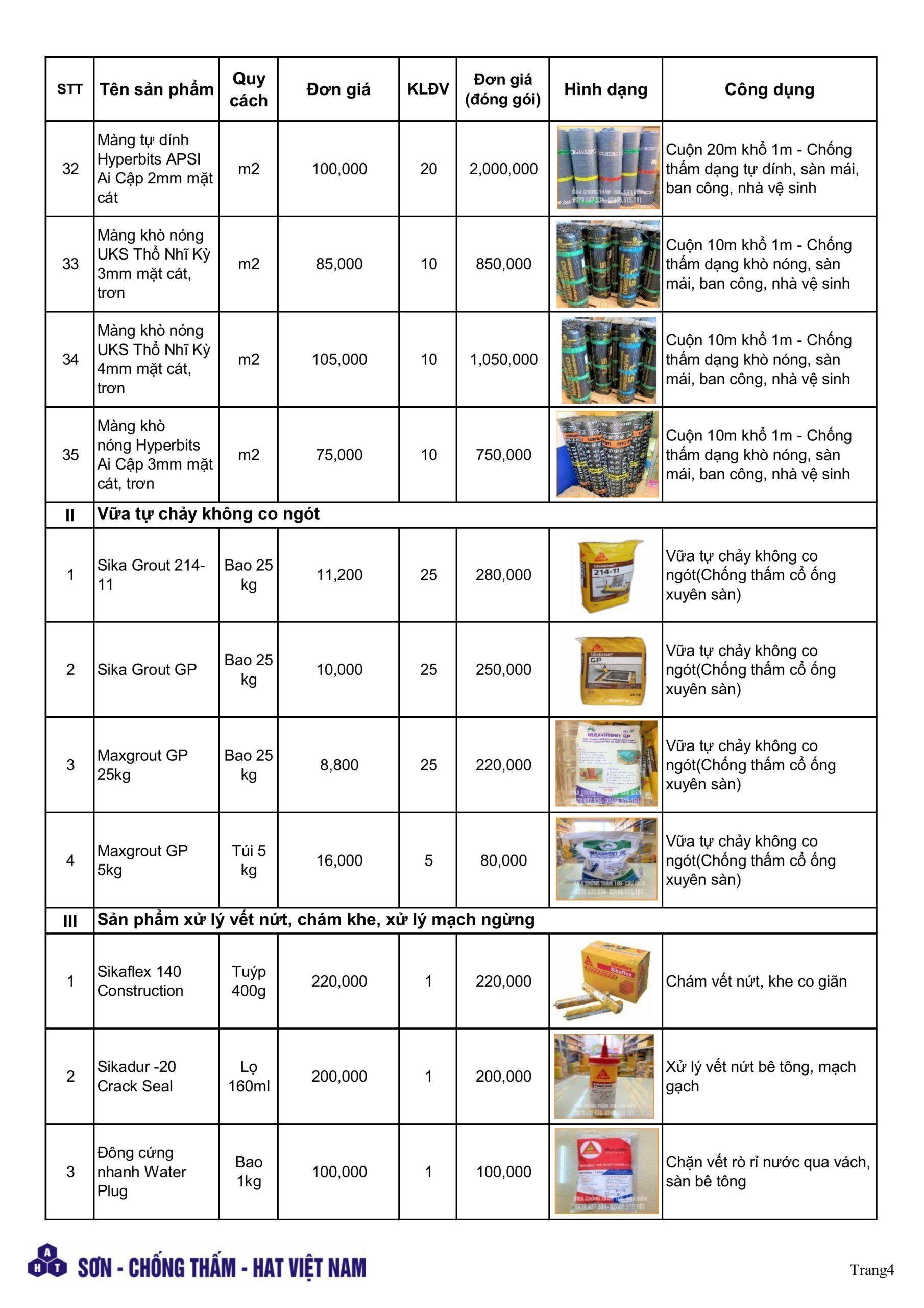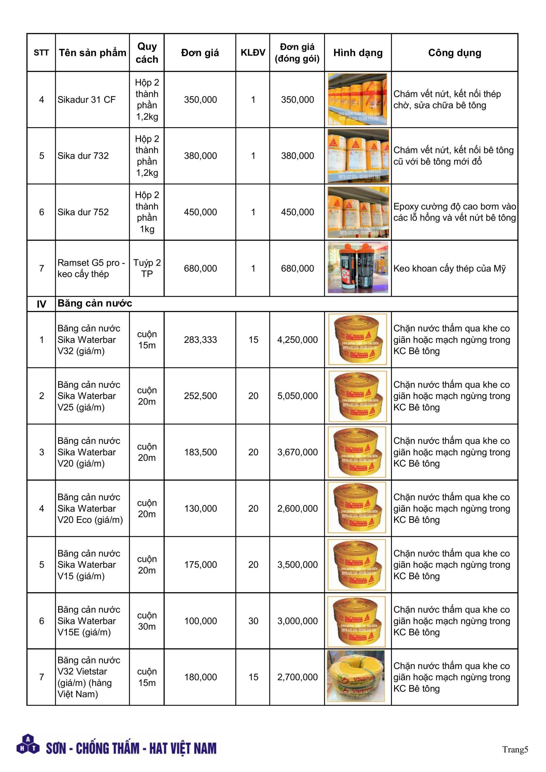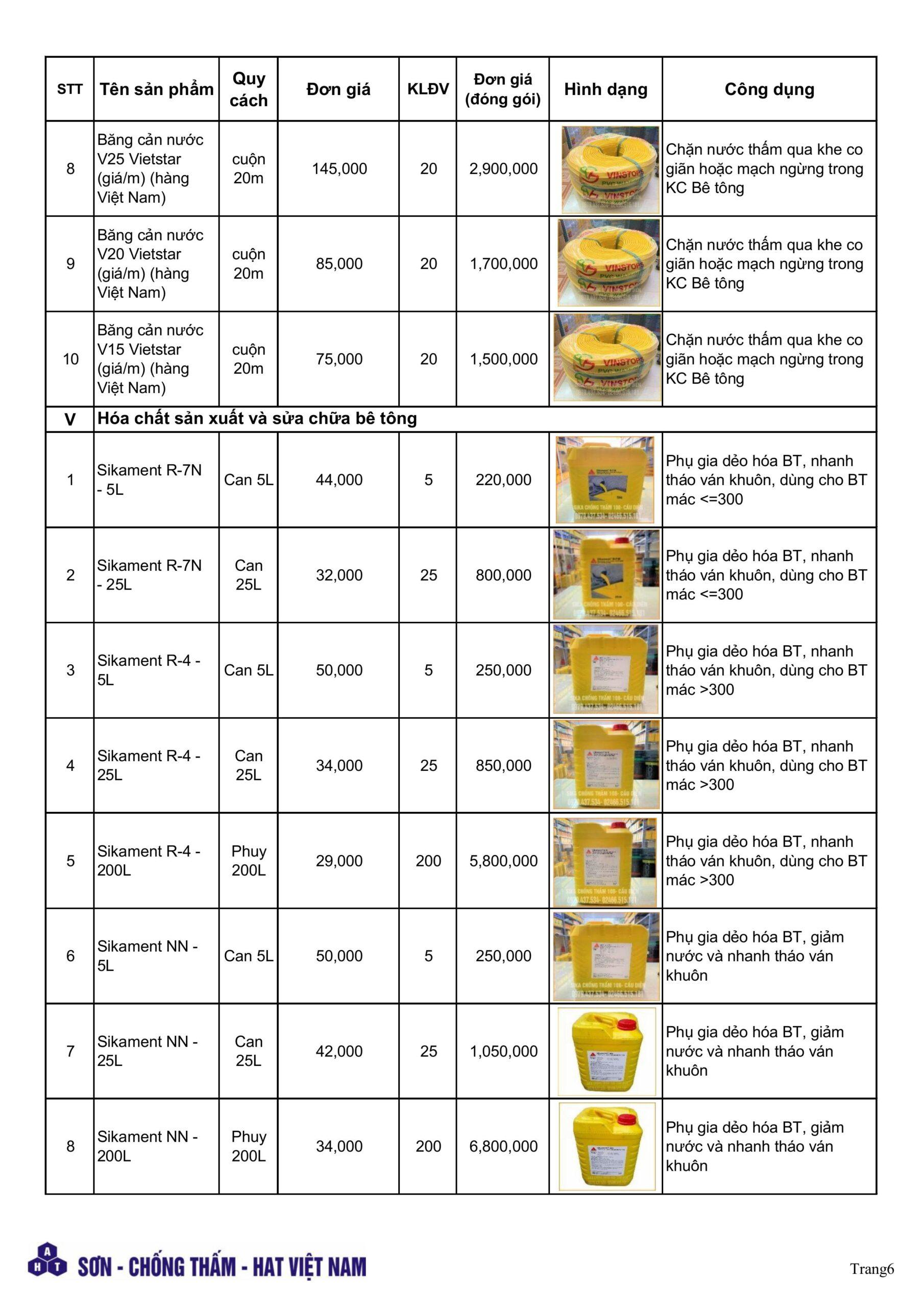 Bảng giá sika chống thấm mới nhất tháng 4.2026. pdf